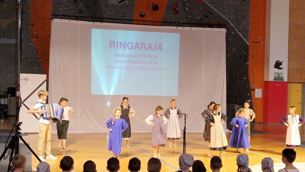 V sredo, 18. 3. 2026, se je Otroška folklorna skupina OŠ Radlje ob Dravi predstavila na srečanju otroških folklornih skupin v Športni hiši Radlje.
