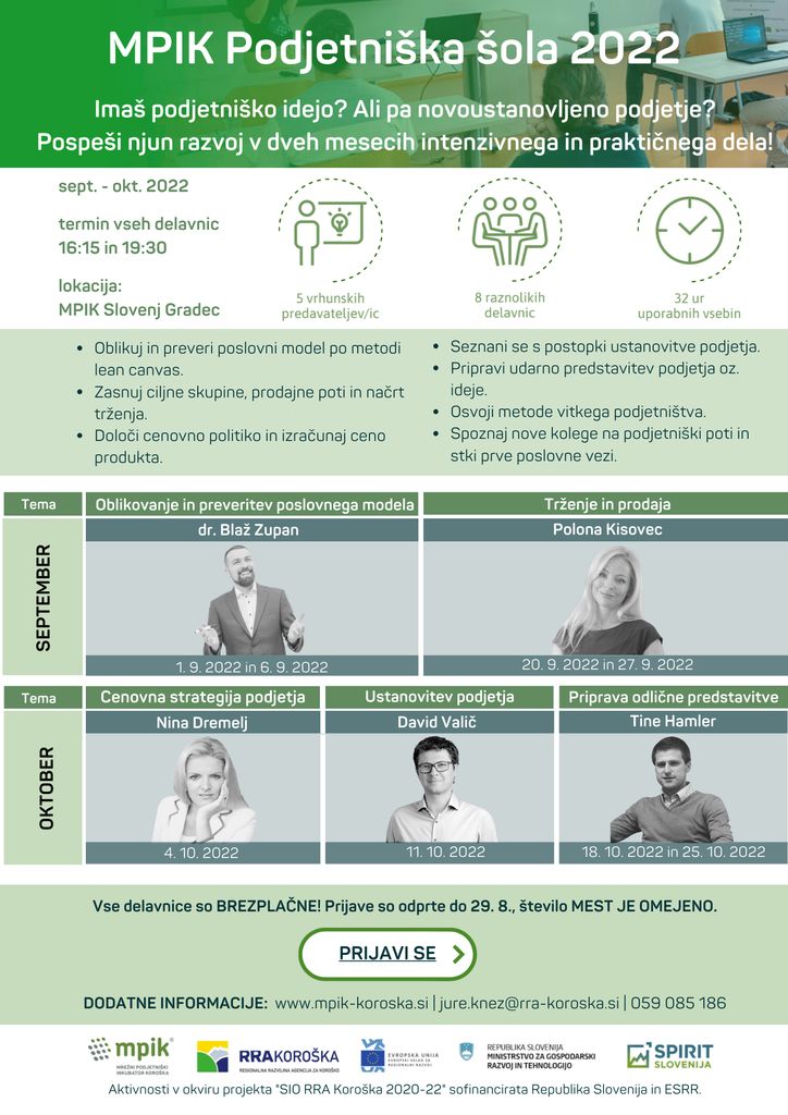 Imaš podjetniško idejo? Prijavi se na MPIK Podjetniško šolo. Prijave samo še do 29.8. na povezavi: POVEZAVI