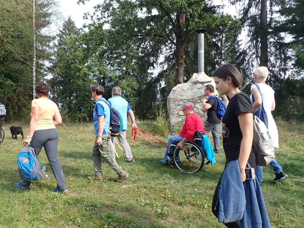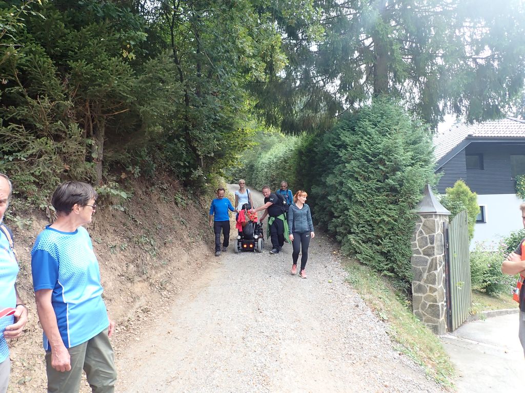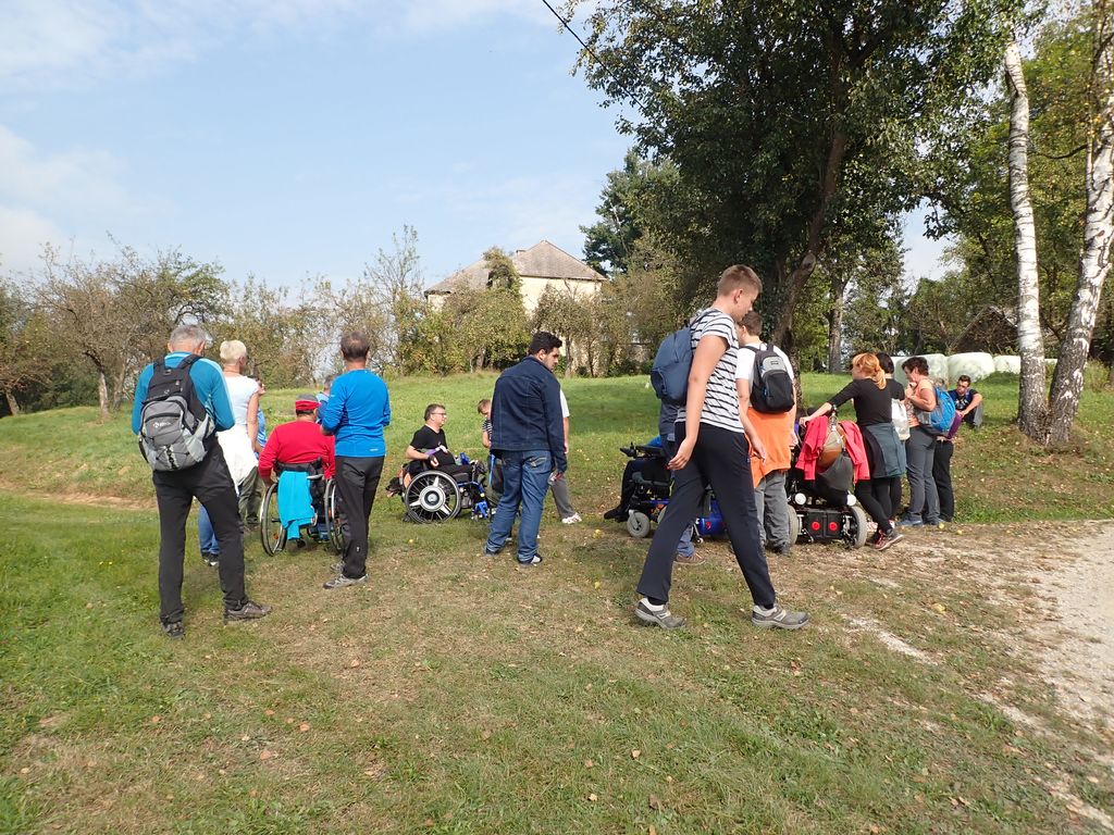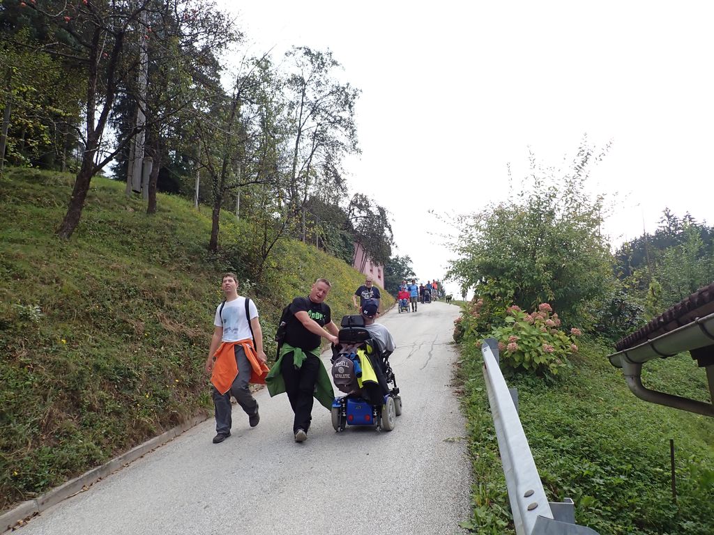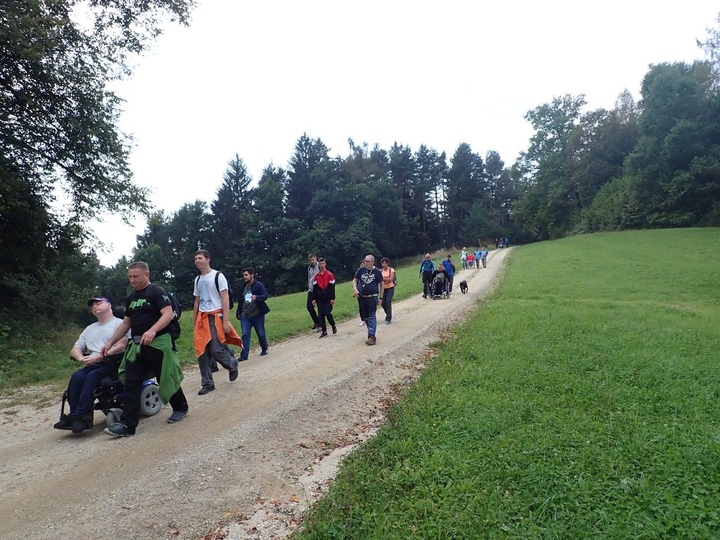Pričakalo nas je megleno torkovo jutro na zadnjega poletnega dne – 22.9.- leta 2020. Zaradi morebitnega primera okužb in korona ukrepov se Inkluzijskega pohoda (drugega na Festivalih drugačnosti) niso mogli udeležiti varovanci CUDV iz VDC Slovenj Gradec in Raven, so pa na zboru bili varovanci iz VDC Ivančica - Zveze Sonček, 3. osnovne šole in iz Društva paraplegikov Koroške. Spremstvo in pomoč smo imeli s strani vodnikov in članov Planinskega društva Slovenj Gradec, a za našo varovanje so poskrbeli prostovoljni gasilci PD Slovenj Gradec. Po obrazložitvi poteka poti, mest kje bodo postanki, kje so posebnosti, navodil varovanju in kako pravilno potisniti/zavirati invalidski voziček je sledila pesmica za start pohoda. Pravzaprav smo kar vsi komaj čakali, sicer varni a ozki pločniki in se v strmino krene po cesti – saj če jed strmo se gre cik-cak navzgor. A naši pomočniki so vleko tako resno vzeli, da smo šli gor kot puščica. Pod gradom sta nas, ki smo šli na vrh počakala dva, ki sta imela električna invalidska vozička in sta bila prenizka za razbrazdan teren poti do gor. Tako kot po poti smo udeležencev povedala, kje smo, kaj vidimo, kaj iz zgodovine, pa tudi kaj smešnega. Po postanku za sendvič in vodo smo se spustili do križišča, kjer se je skupina ločila – 3 OŠ je varno odbrzela nazaj v šolo na Štibuhu, druga pa se je podala po drugi strmi, večji del gramozni cesti po drugi strani do vznožja hriba, se zopet ločila na dve skupinici, a vsi smo varno prišli do svojih izhodišč. »Iz levega žepa v desnega«. Zato, ker je to »fajn«, zdravo in poučno bomo drugo leto zopet »vandrali« - že vemo kje in kam.