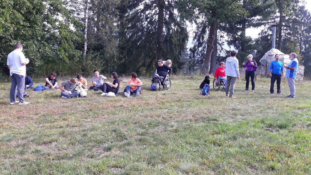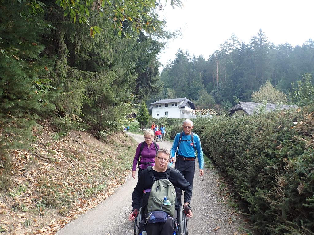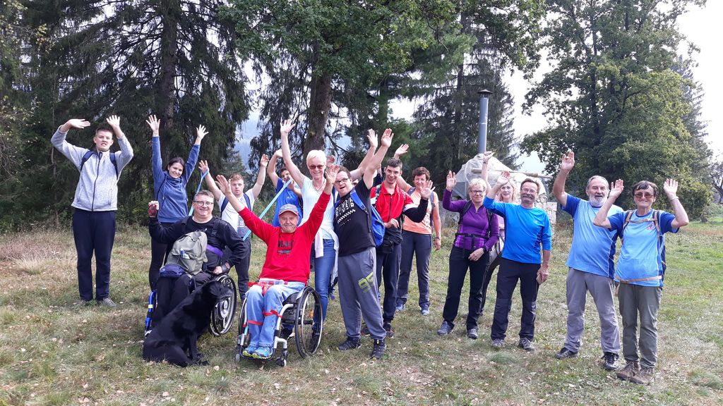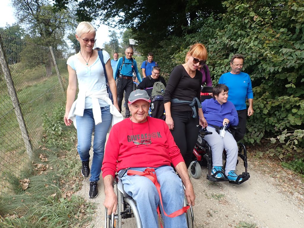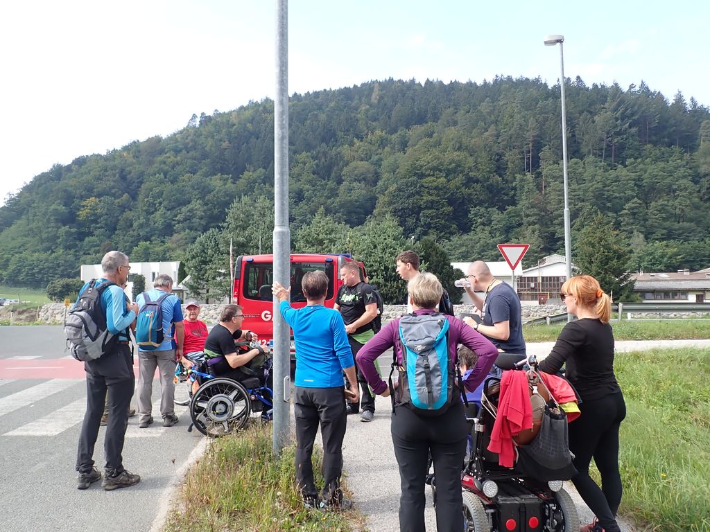 Pričakalo nas je megleno torkovo jutro na zadnjega poletnega dne – 22.9.- leta 2020. Zaradi morebitnega primera okužb in korona ukrepov se Inkluzijskega pohoda (drugega na Festivalih drugačnosti) niso mogli udeležiti varovanci CUDV iz VDC Slovenj Gradec in Raven, so pa na zboru bili varovanci iz VDC Ivančica - Zveze Sonček, 3. osnovne šole in iz Društva paraplegikov Koroške. Spremstvo in pomoč smo imeli s strani vodnikov in članov Planinskega društva Slovenj Gradec, a za našo varovanje so poskrbeli prostovoljni gasilci PD Slovenj Gradec. Po obrazložitvi poteka poti, mest kje bodo postanki, kje so posebnosti, navodil varovanju in kako pravilno potisniti/zavirati invalidski voziček je sledila pesmica za start pohoda. Pravzaprav smo kar vsi komaj čakali, sicer varni a ozki pločniki in se v strmino krene po cesti – saj če jed strmo se gre cik-cak navzgor. A naši pomočniki so vleko tako resno vzeli, da smo šli gor kot puščica. Pod gradom sta nas, ki smo šli na vrh počakala dva, ki sta imela električna invalidska vozička in sta bila prenizka za razbrazdan teren poti do gor. Tako kot po poti smo udeležencev povedala, kje smo, kaj vidimo, kaj iz zgodovine, pa tudi kaj smešnega. Po postanku za sendvič in vodo smo se spustili do križišča, kjer se je skupina ločila – 3 OŠ je varno odbrzela nazaj v šolo na Štibuhu, druga pa se je podala po drugi strmi, večji del gramozni cesti po drugi strani do vznožja hriba, se zopet ločila na dve skupinici, a vsi smo varno prišli do svojih izhodišč. »Iz levega žepa v desnega«. Zato, ker je to »fajn«, zdravo in poučno bomo drugo leto zopet »vandrali« - že vemo kje in kam.