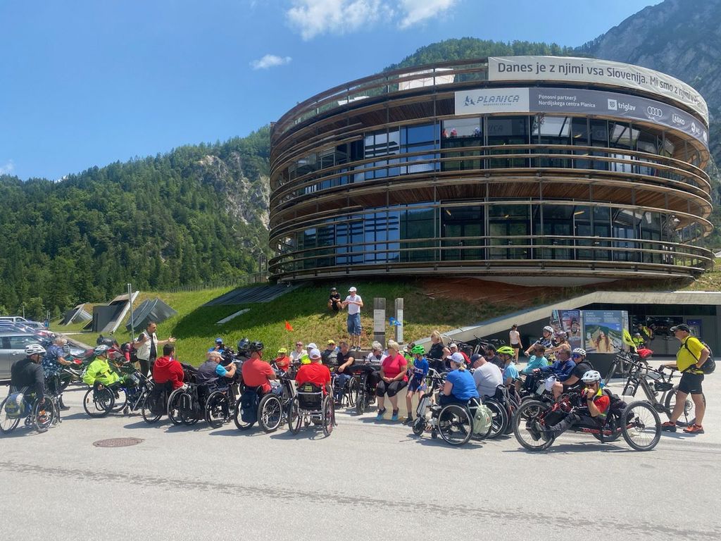»Klobasarjenje« se imenuje vsakoletno srečanje ročnih kolesarjev Zveze paraplegikov Slovenije. Začetek Klobasarjenja je bil namenjen povezovanju ročnih kolesarjev, kasneje pa se pridružilo tudi vedno več uporabnikov električnih priklopov. Na letošnjem 11. srečanju, ki je potekalo v Mojstrani v soboto, 21. junija, v soorganizaciji Zveze paraplegikov Slovenije in Društva paraplegikov Gorenjske sta nas na začetku nagovorila vodja športa na ZPS Gregor Gračner in predsednik DPG Matej Vukovič. Tokrat je aktivno sodelovalo 30 članov Zveze paraplegikov Slovenije z ročnimi kolesi in električnimi priklopi – 3 iz DP Koroške, ob njih pa še 20 članov spremljevalnega osebja – osebnih asistentov, družinskih članov in prostovoljcev.