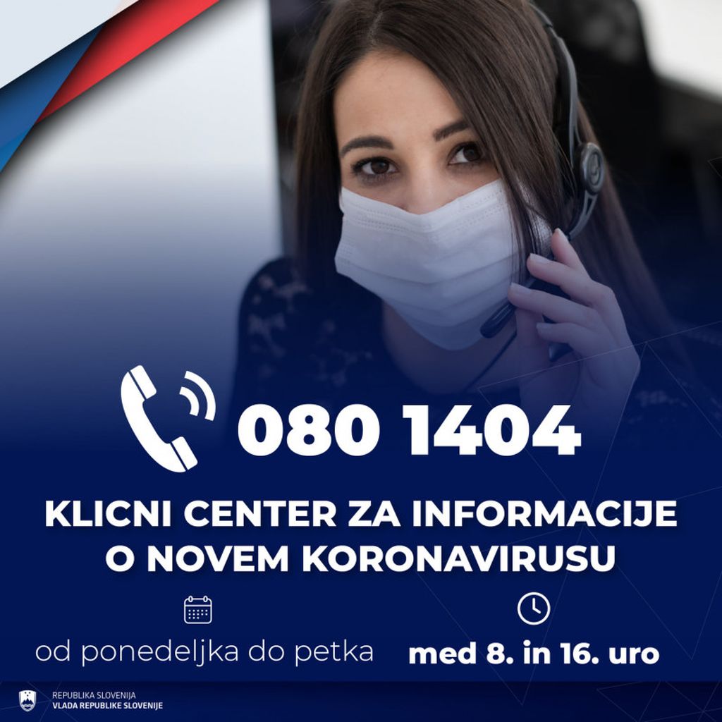 Vlada Republike Slovenije je objavila spremenjen delovni čas klicnega centra, in sicer od ponedeljka 26. 4. bo klicni center deloval po skrajšanem delovnem času.