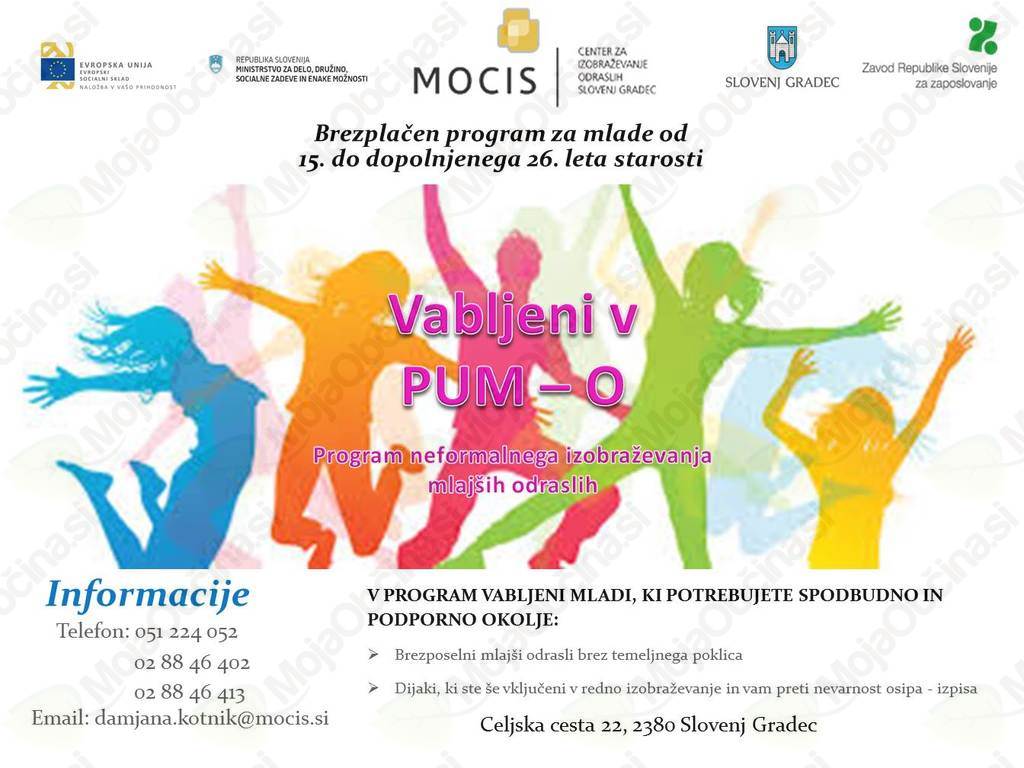 Vabljeni v PUM-o, program neformalnega izobraževanja mlajših odraslih. Program je brezplačen za vse od 15. leta do dopolnjenega 26. leta starosti.
