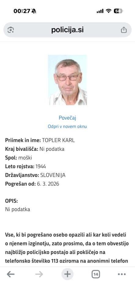 Pogrešane osebe 6. 3. 2026 14.07