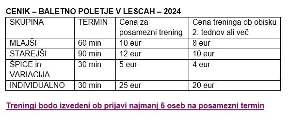 Vabljeni VSI, ki si želite med poletjem baletnih treningov, ne glede na vašo starost ali baletno predznanje, saj nudimo vadbo za vsakogar: