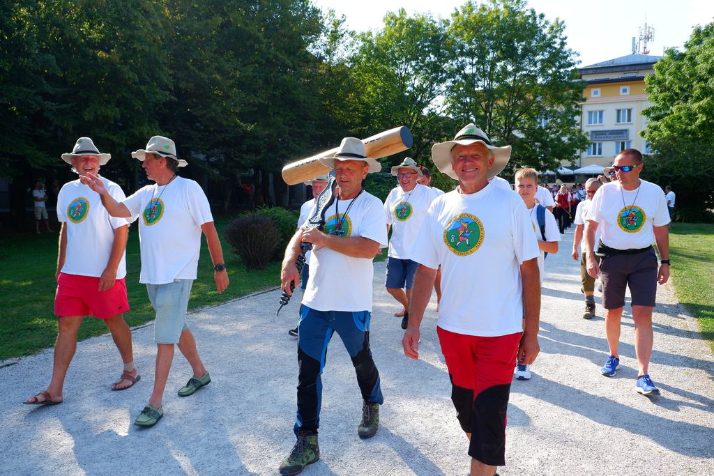 Jubilejni 50. pohod članov Večno mladih fantov na Stol, sledi prireditev na Linahrtovem trgu v Radovljici - staro mestno jedro.