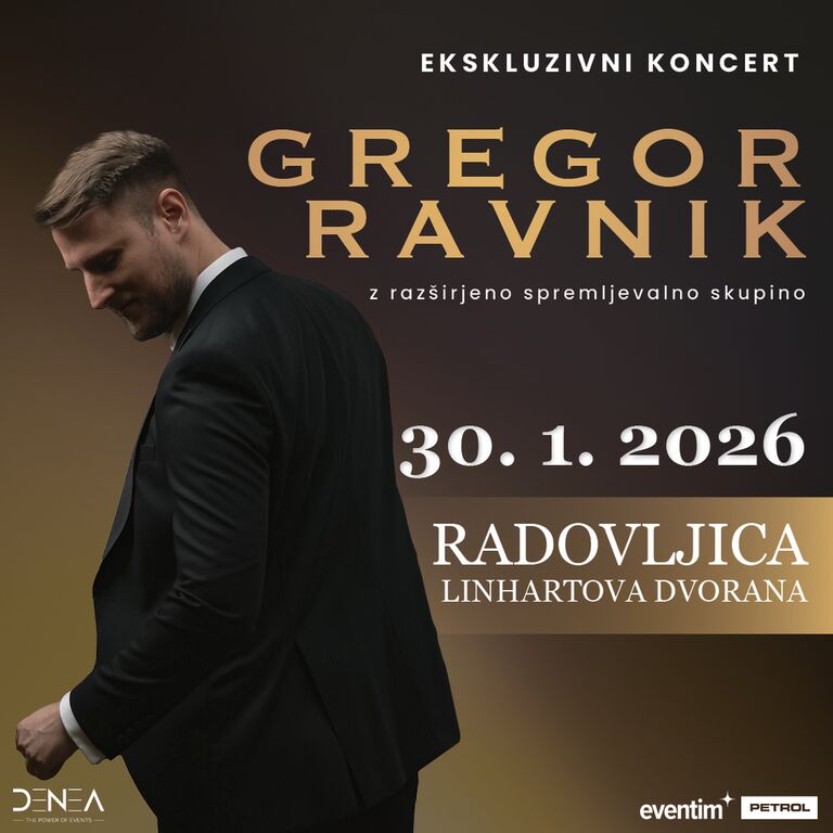 Gregor Ravnik v svojem edinstvenem slogu, v objemu pop glasbe in klasične opere, končno prihaja v Radovljica.Njegovi koncerti ne samo, da združujejo različne zvrsti glasbe, ampak povezujejo izjemno zasedbo z zvestimi poslušalci, ki jih z glasbenimi presežki ponesejo tja visoko nad oblake, kjer se prebudita sreča in veselje. Zahvaljujoč izjemni vaši podpori, draga publika, je Gregor po razprodanih lanskoletnih koncertih za letos s svojo razširjeno zasedbo pripravil pravo mini slovensko turnejo, ki ob predstavitvi novih skladb že navdušuje mnoge.