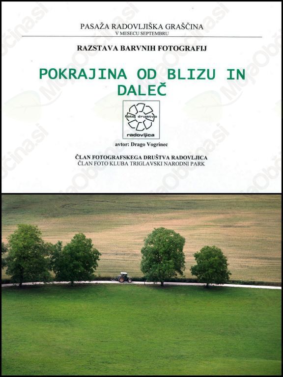 V fotografski galeriji Pasaža v Radovljiški graščini, Linhartov trg 1 v mesecu septembru samostojno razstavlja Drago Vogrinec, član Fotografskega društva Radovljica s fotografijami pod naslovom POKRAJINA OD BLIZU IN DALEČ. Razstava je odprta od 1. septembra do 30. septembra 2015, vsak dan med 8:00 in 22:00 uro.