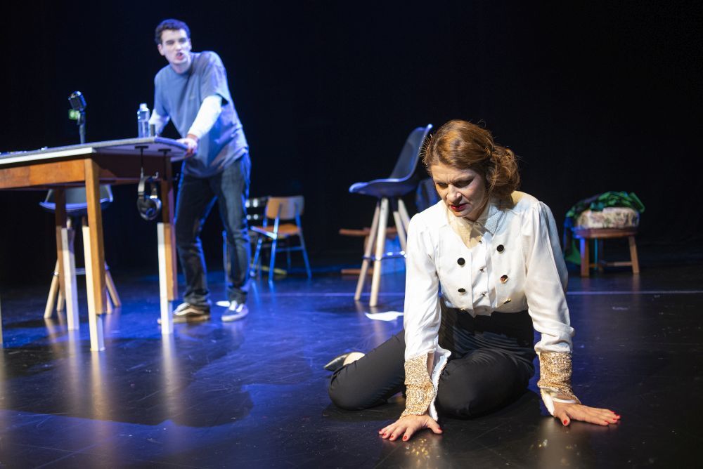Tragikomedija Na valovih, v izvedbi Šentjakobskega gledališča, na humoren in provokativen pogovor med operno divo in novinarjem odpira vprašanja o odgovornosti umetnika v današnjem svetu vojn, nasilja, ksenofobije in nacionalizma. Na dan privrejo prikrite strasti, strah, bes, maščevanje, sovraštvo in tudi hrepenenje po empatiji.