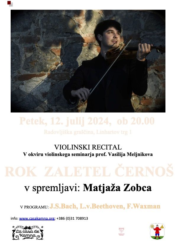 Violinski recital v petek, 12. julija, ob osmih zvečer, v okviru violinskega seminarja prof. Vasilija Meljnikova.