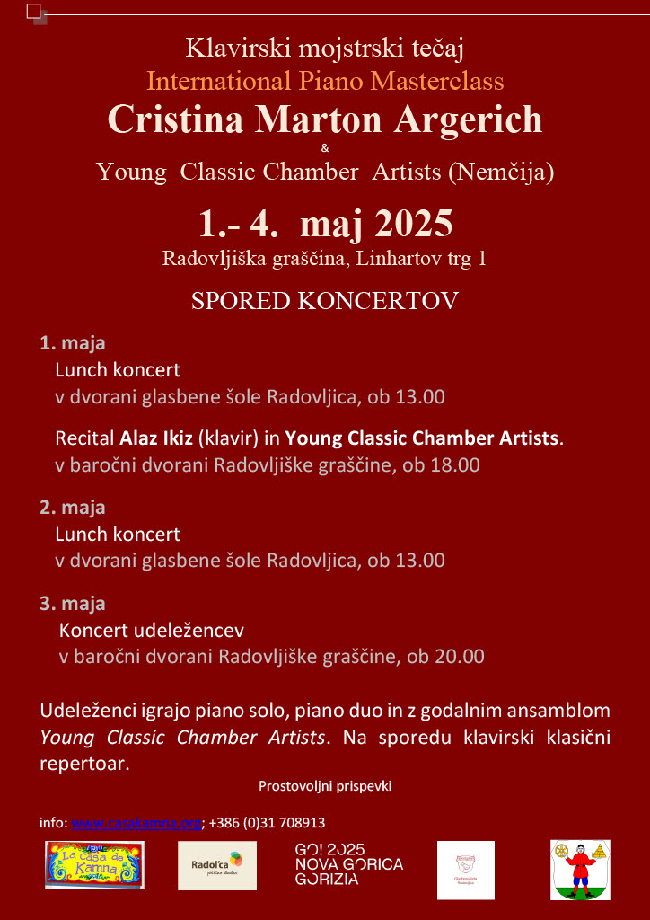 Na klavirski semnar, pod vodstvom Cristine Marton Argerich iz Augsburga (Nemčija), prihaja 14 mladih glasbenic in glasbenikov iz različnih evropskih držav, ki bodo skupaj s komorno zasedbo izvedli 4 koncerte v radovljiški graščini.