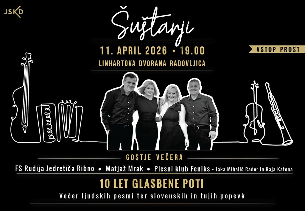 Ob 10-letnici delovanja skupina Šuštarji pripravlja poseben koncert, s katerim bodo obeležili desetletje skupnega ustvarjanja, glasbe in prijateljstva. Jubilejni večer bo potekal 11. aprila 2026 ob 19. uri v Linhartovi dvorani v Radovljici, vstop pa bo prost.