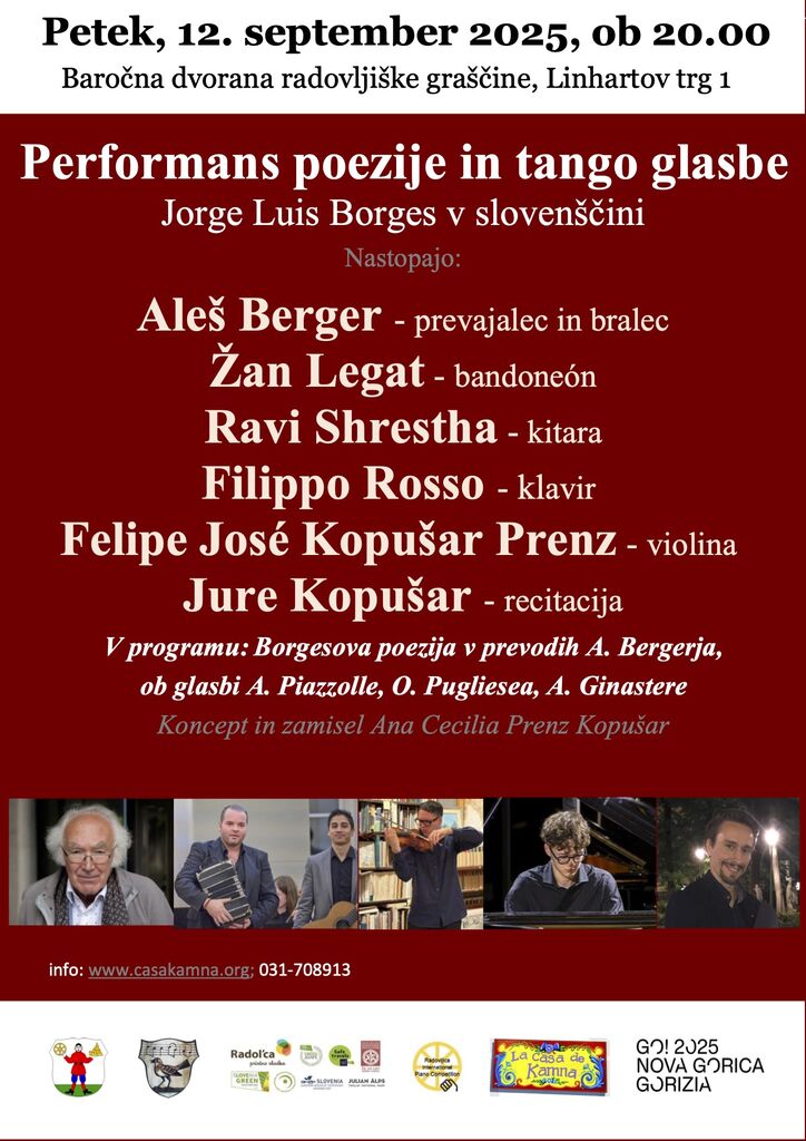 Tokratno naše srečanje združuje številne aspekte, ki nas napolnjujejo z veseljem in jih želimo deliti z vami: čudovite prevode Aleša Bergerja, prisotnost nadarjenih glasbenikov in dramskega igralca iz našega mesta, združenje Argentine in Slovenije ter močna glasba in imenitna poezija.