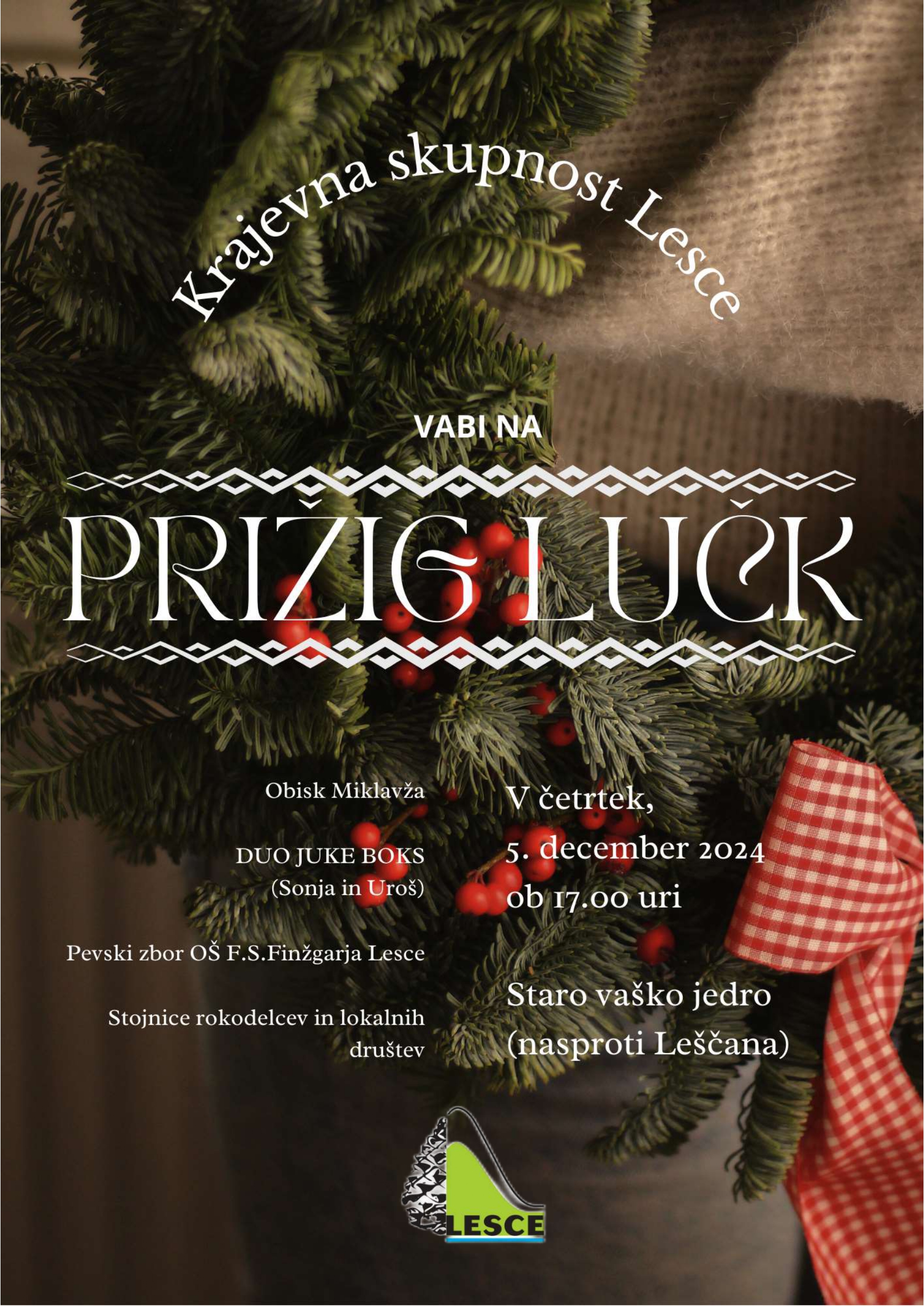 Pridte in razvetlite Lesce skupaj z nami, v četrtek, 5. decembra 2024, v staro vasko jedro Lesc, pričnemo ob 17. uri