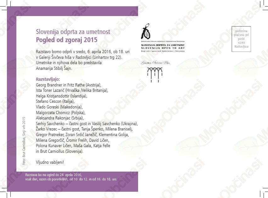 Organizator: Muzeji radovljiške občine (MRO) - Galerija Šivčeva hiša