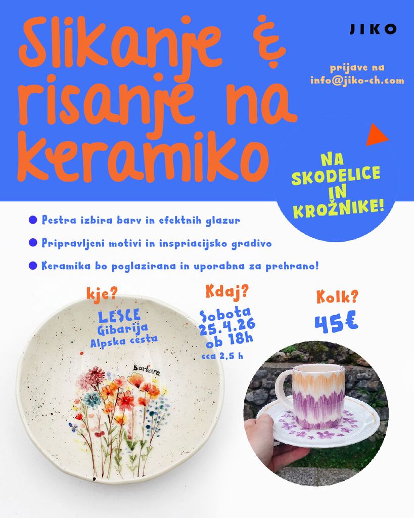 Risali bomo že na enkrat pečeno keramiko, ki nam bo služila kot platno. Ko jih bomo porisali, jih mi še poglaziramo in ponovno spečemo, da bo vaš izdelek uporaben tudi za prehrano.