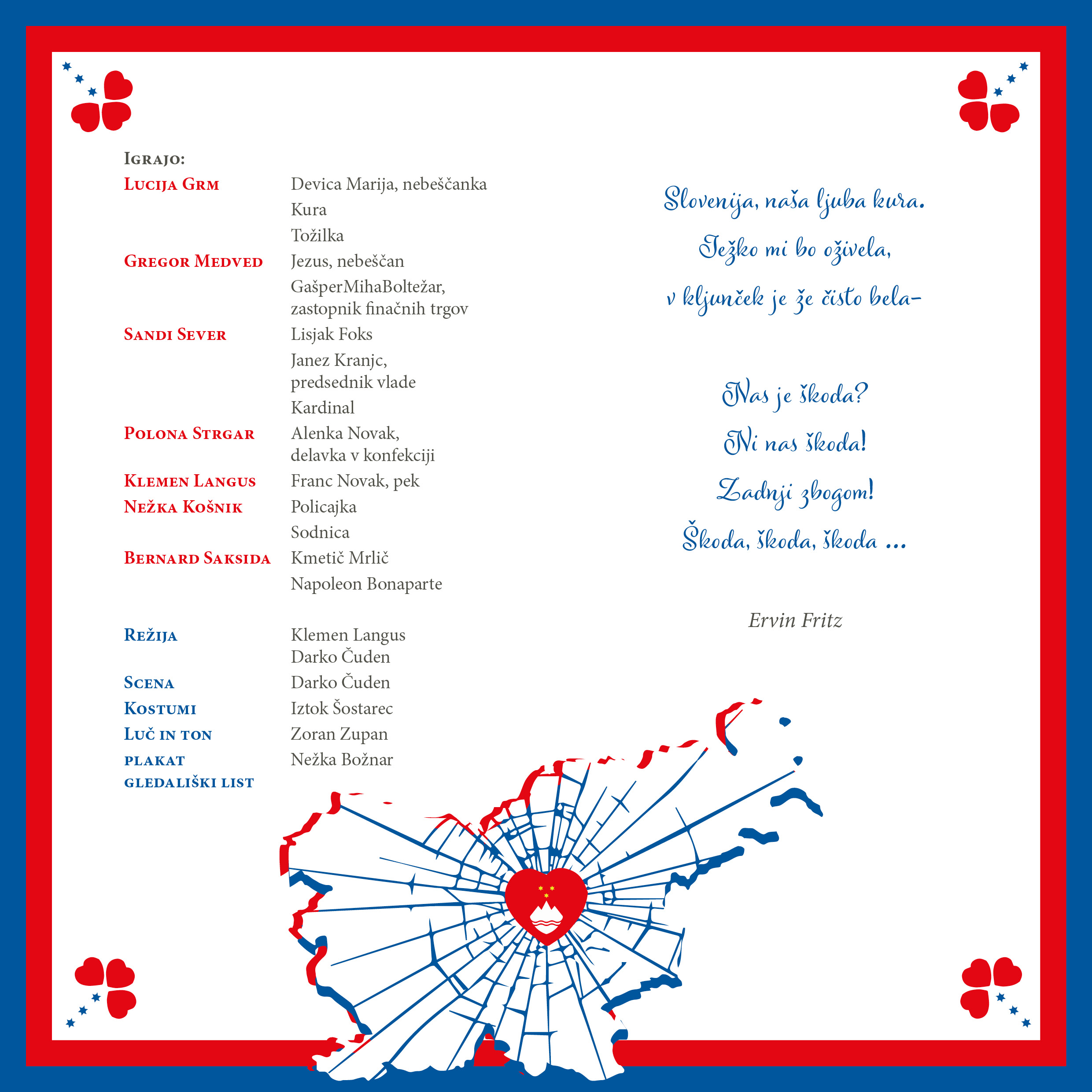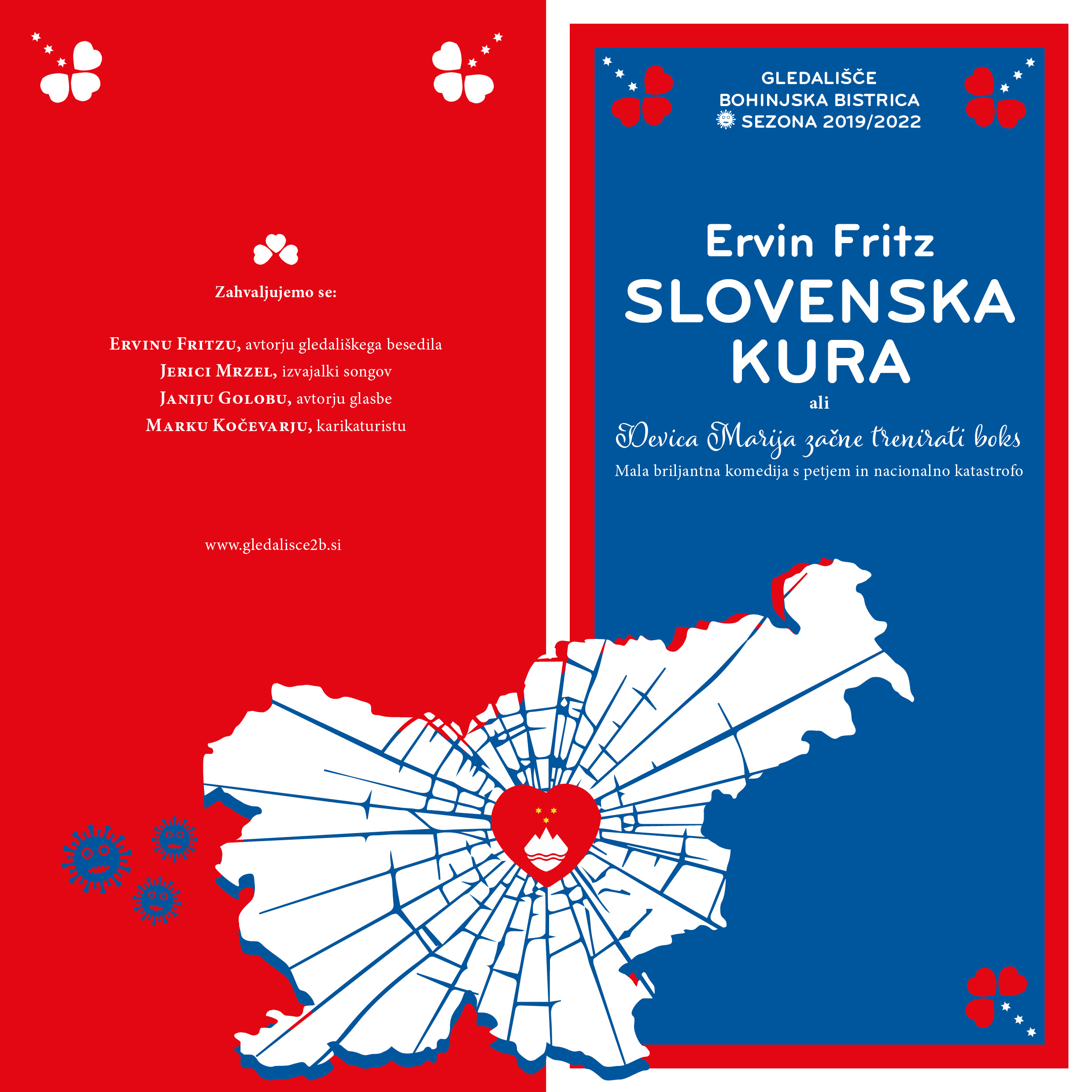Besedilo Ervina Fritza Slovenska kura je več kot aktualen prikaz trenutne politične, kulturne, socialne in verske podobe v Sloveniji in širše. Ervin Fritz je namreč tak fric, da po ervinfritzovsko pelje in melje svojo, mojo, tvojo, našo štorijo, ostro in srdito, burleskno duhovito, razgalja potja in brezpotja družbe, v kateri kažipotov ravno ne mrgoli, plotov pa ne zmanjka.