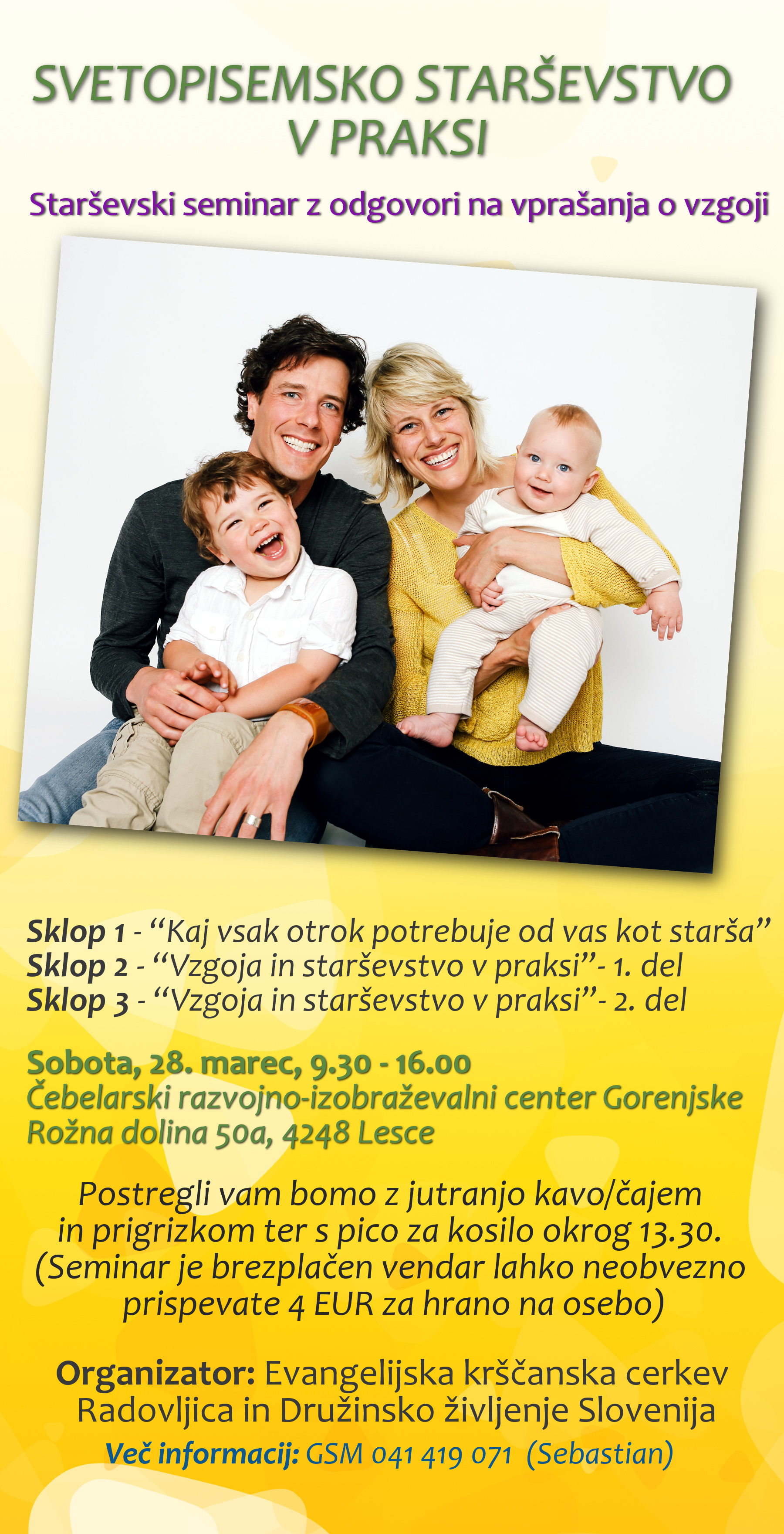 Organizator: Evangelijska krščanska cerkev Radovljica in Družinsko življenje Slovenija