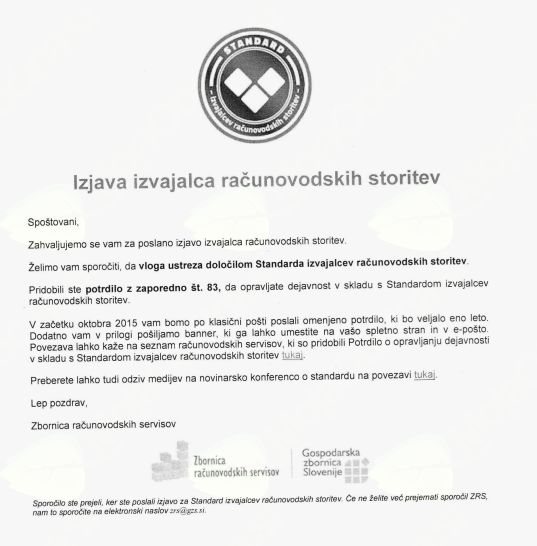 - Možnost izvajanja računovodstva na sedežu podjetja stranke.