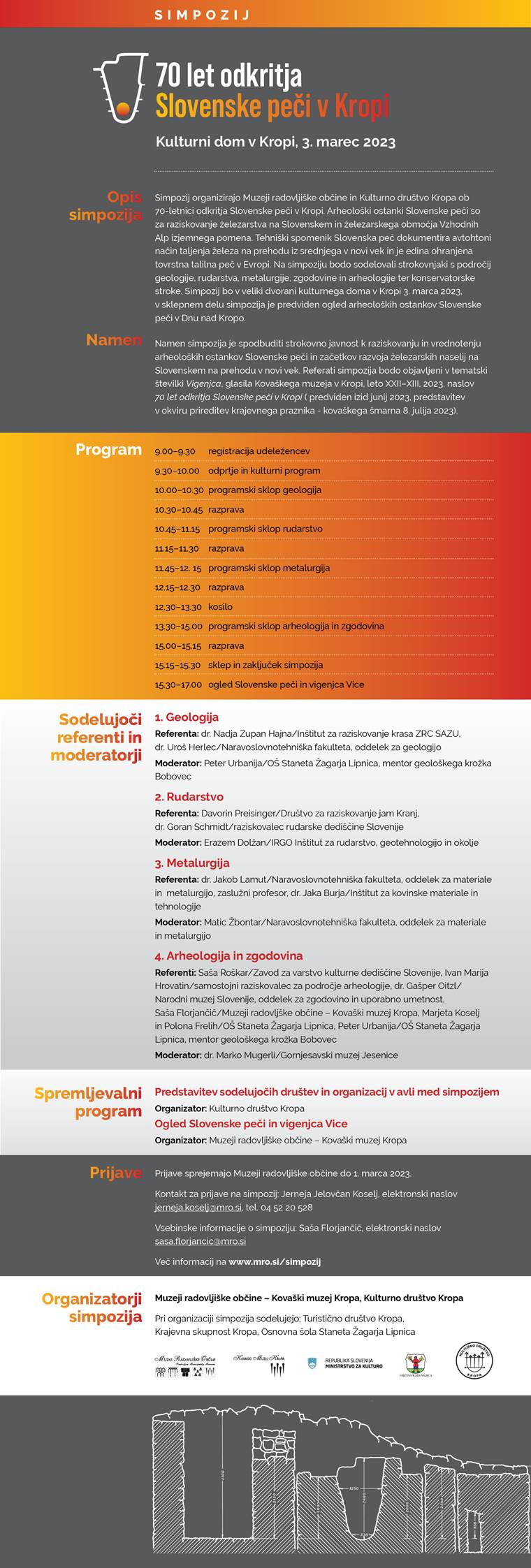 Simpozij bo v veliki dvorani kulturnega doma v Kropi 3. marca 2023, v sklepnem delu simpozija je predviden ogled arheoloških ostankov Slovenske peči v Dnu nad Kropo.