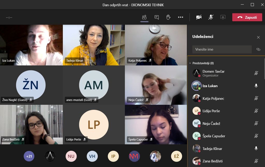 Program ekonomski tehnik sta predstavili profesorici, ki poučujeta ekonomske strokovne predmete, Katja Poljanec in Lidija Perše, pridružile so se tudi dijakinje Špela, Neja in Zana, ki so povedale, kako poteka delo pri predmetu učno podjetje in pri statistiki. Tadeja Klinar je skupaj z maturantko Izo zaključila predstavitev s prikazom pouka pri angleščini, nemščini in poslovni nemščini.