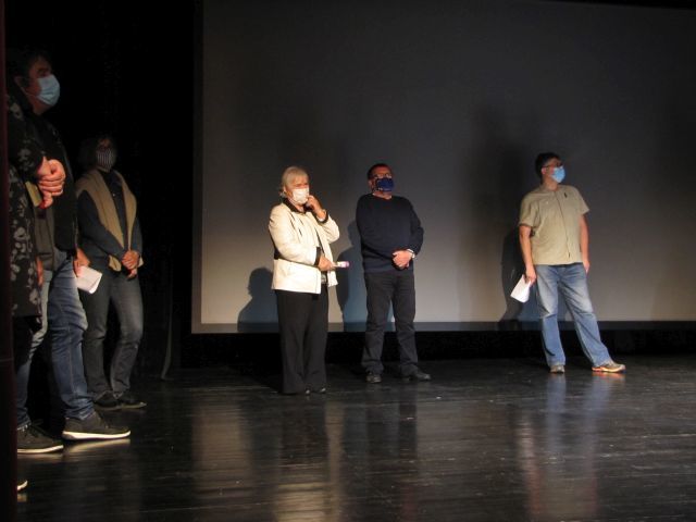 Čisto na koncu pa je sledilo še branje finalistov (na sliki Andrej Kokot iz Radovljice) - ena njegovih finalnih zgodb je tukaj, ki so se, tako kot nominiranci pred tem na koncu postavili pod oder in se snetih mask nastavili objektivu.
