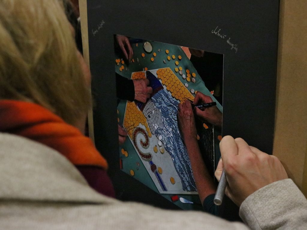Izdelava mozaično-lesene skulpture Svetega Ambroža v Čebelarskem razvojno izobraževalnem centru Gorenjske