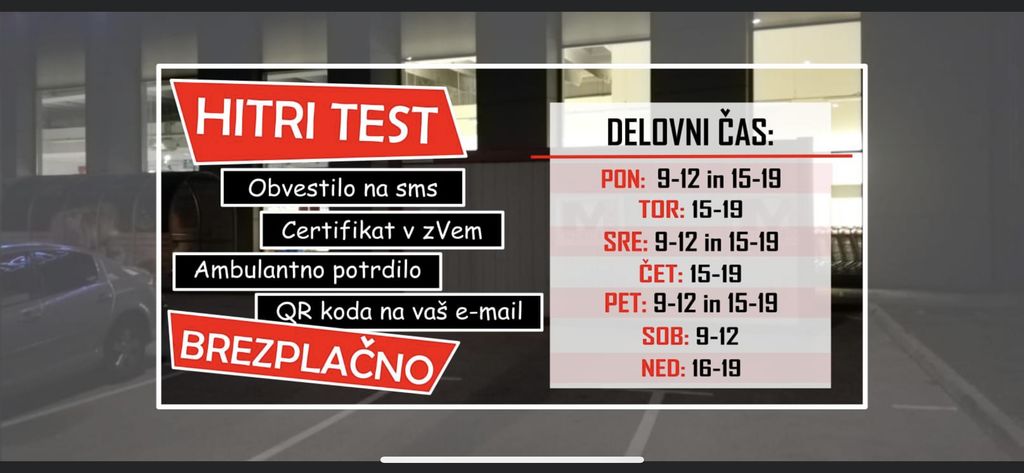 Sporočamo, da testiranje v LESCAH, poteka pred Mercatorjem v Rožni dolini.