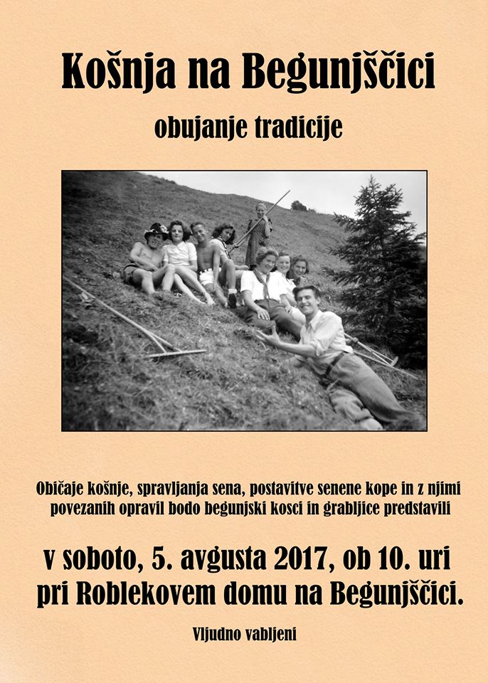 Pred desetletji je Begunjščica za begunjske kmete pomenila dodaten vir krme za živino, saj je v dolini primanjkovalo pašnikov. Po 2. svetovni vojni je košnja kopišč zamrla, številni običaji in tradicije, povezane s tem vsakoletnim dogodkom, pa skoraj odšle v pozabo. Starodavno tradicijo in znanje o planinski košnji so do neke meri ohranili kosci pri Roblekovem domu, da pa ti običaji košnje, spravljanja sena, postavitve senene kope in z njimi povezanih opravil ne bi odšli v pozabo, jih bodo begunjski kosci in grabljice predstavili v soboto, 5. avgusta 2017, ob 10. uri pri Roblekovem domu na Begunjščici.