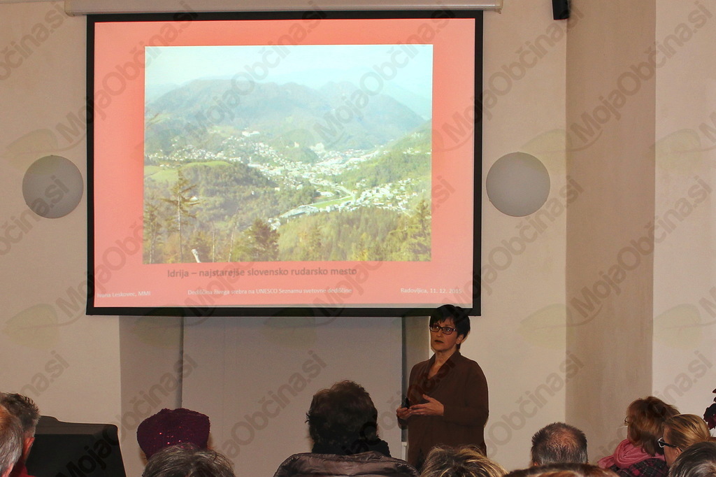 Idrija, najstarejše slovensko rudarsko mesto, leži na drugem največjem nahajališču živosrebrove rude na zemeljski obli. Njen nastanek je povezan z odkritjem samorodnega živega srebra davnega leta 1490. Naslednjih 500 let je idrijsko zgodovino in usodo njenih ljudi krojilo prav živo srebro. Proizvodnja te kovine je potekala v maloštevilnih rudnikih, med katerimi sta bila dva največja Idrija v Sloveniji in Almadén v Španiji, zato je upravičena trditev, da sta pomembno sooblikovala svetovno zgodovino. Rudnika sta bila gospodarsko povezana, danes sta zaprta, oba pa v veliki meri ohranjata edinstveno dediščino, s katero predstavljata različne vidike »kulture živega srebra« tako v tehniškem, industrijskem in gospodarskem kot tudi splošnokulturnem, urbanem, socialnem in ekološkem smislu. Pot od ideje oz. pobude za vpis idrijske rudniške dediščine na Unescov seznam je bila dolga in naporna. A vloženo delo se je obrestovalo. Julija 2012 je bila »Dediščina živega srebra. Almadén in Idrija« vpisana na ta prestižni seznam kulturnih dosežkov vsega človeštva. Proces vpisa nam je na muzejskem večeru v petek, 11. 12., nadvse zanimivo predstavila direktorica Mestnega muzeja Idrija, članica in nekaj časa tudi vodja delovne skupine za pripravo nominacije, Ivana Leskovec.