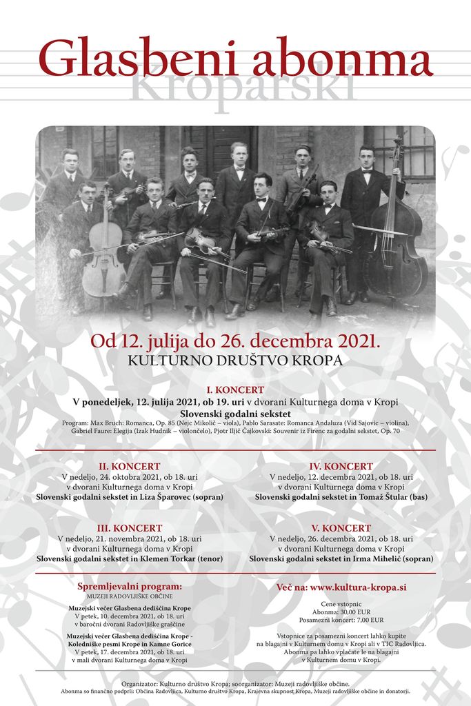 naslednjim koncertom 24. oktobra 2021, ob 18. uri v dvorani Kulturnega doma v Kropi, pa bo ponudil glasbenim sladokuscem preplet