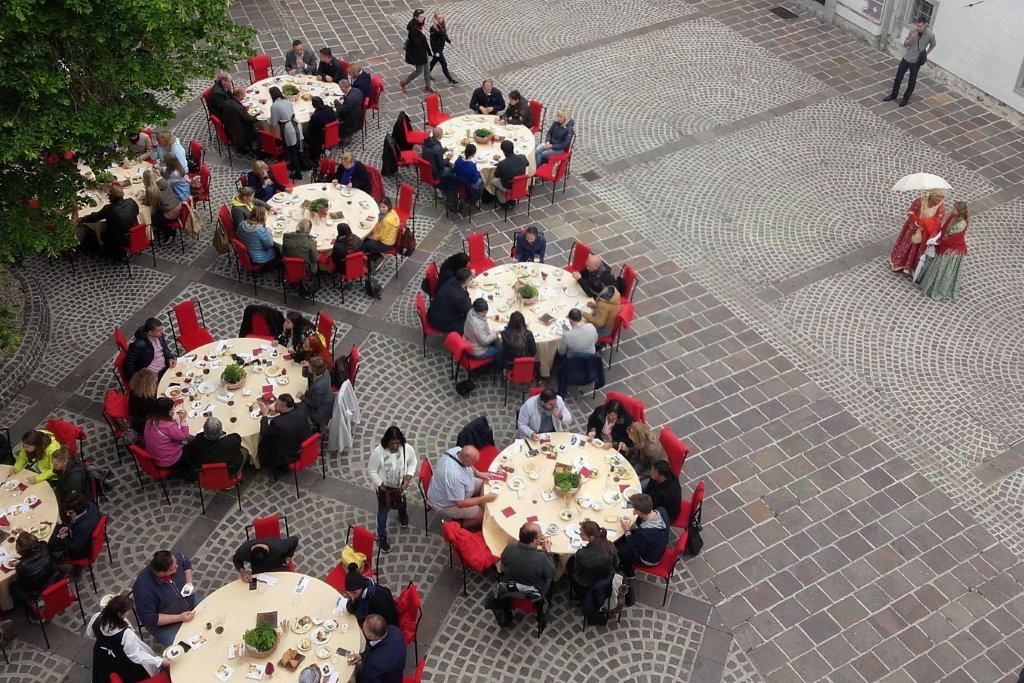 Vida Markovc za fotografijo »Srečanje v srednjeveški Radovljici« s promocijskega dogodka za tuje turistične agente
