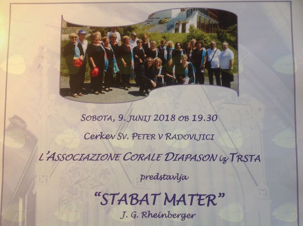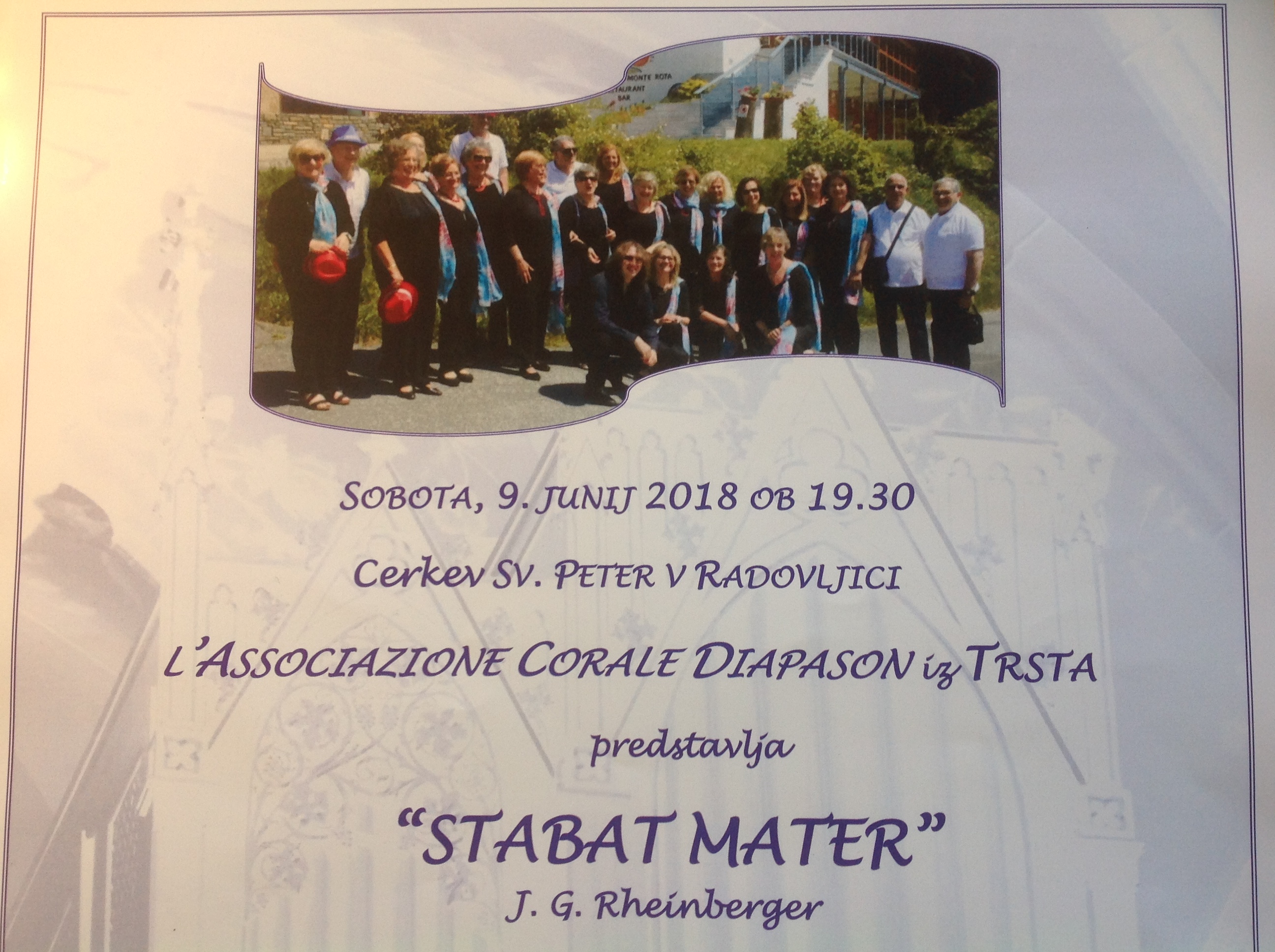 v soboto 9.6. ob 19.30 v cerkev Sv. Petra v Radovljici. Nastopal bo tržaški zbor