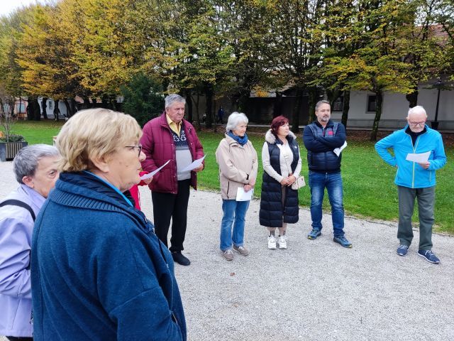 V Grajski park v Radovljici pa bi šli tudi ob dežju, so si povedali udeleženci. A tokrat ni deževalo. Zadnji oktobrski petek je popoldan dobra desetina recitatorjev spet sklenila svoj krog branja partizanske poezije v radovljiškem Grajskem parku. Izbor pesmi je tudi tokrat pripravil Andrej Kokot, bralci pa so med drugim »prima vista« (na prvi pogled/branje) izvedli tudi eno skupinsko recitacijo in to povsem brez vaje. Baje bolje kot marsikatera profesionalna recitatorska skupina. Prav vsi so dobili tudi povabilo v bralno skupino, kjer izvajanje napisanih del ob četrtkih »trenirajo« pod Andrejevim mentorskim vodstvom pri Društvu upokojencev Radovljica. Na obveznem druženju po dogodku so se vprašali, zakaj ne bi kaj takega počeli tudi pri drugih spomenikih po občini. Menda bo kmalu spet taka priložnost, saj enega prav te dni pripravljajo na ponovno postavitev.