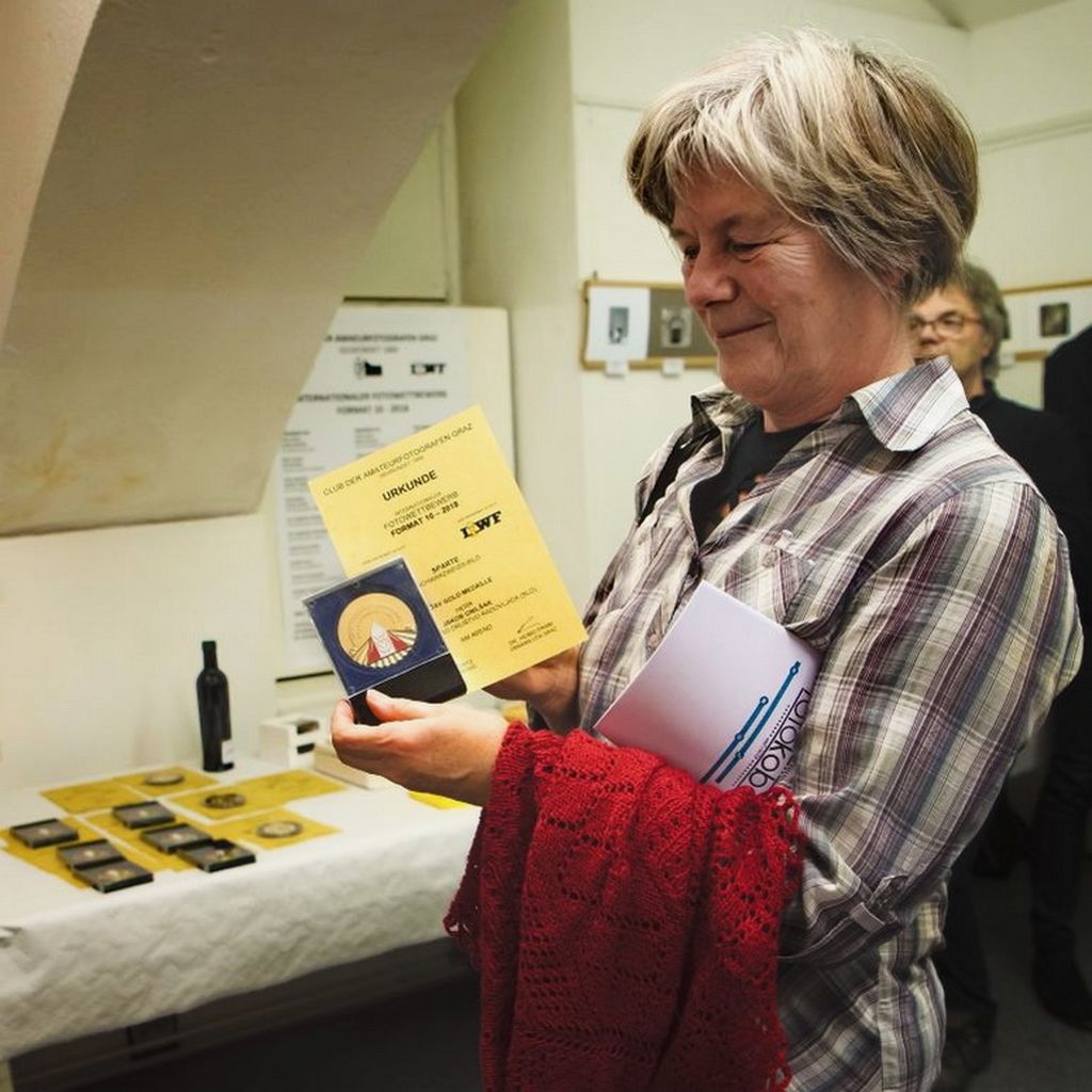 Prejemnik zlate medalje VöAV - Avstrijske zveze fotografov je Jakob Gnilšak, MF, AFIAP, član našega Fotografskega društva Radovljica, za fotografijo Am Abend (Zvečer), v kategoriji črno-bele fotografije.