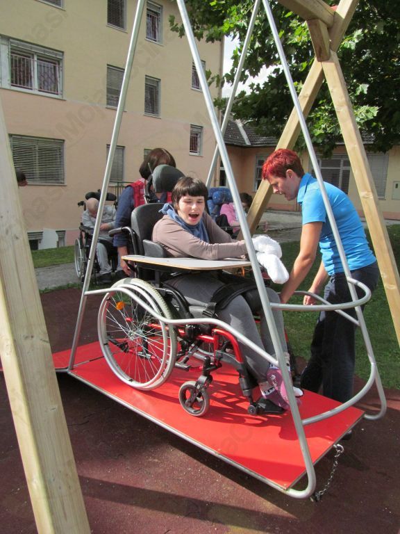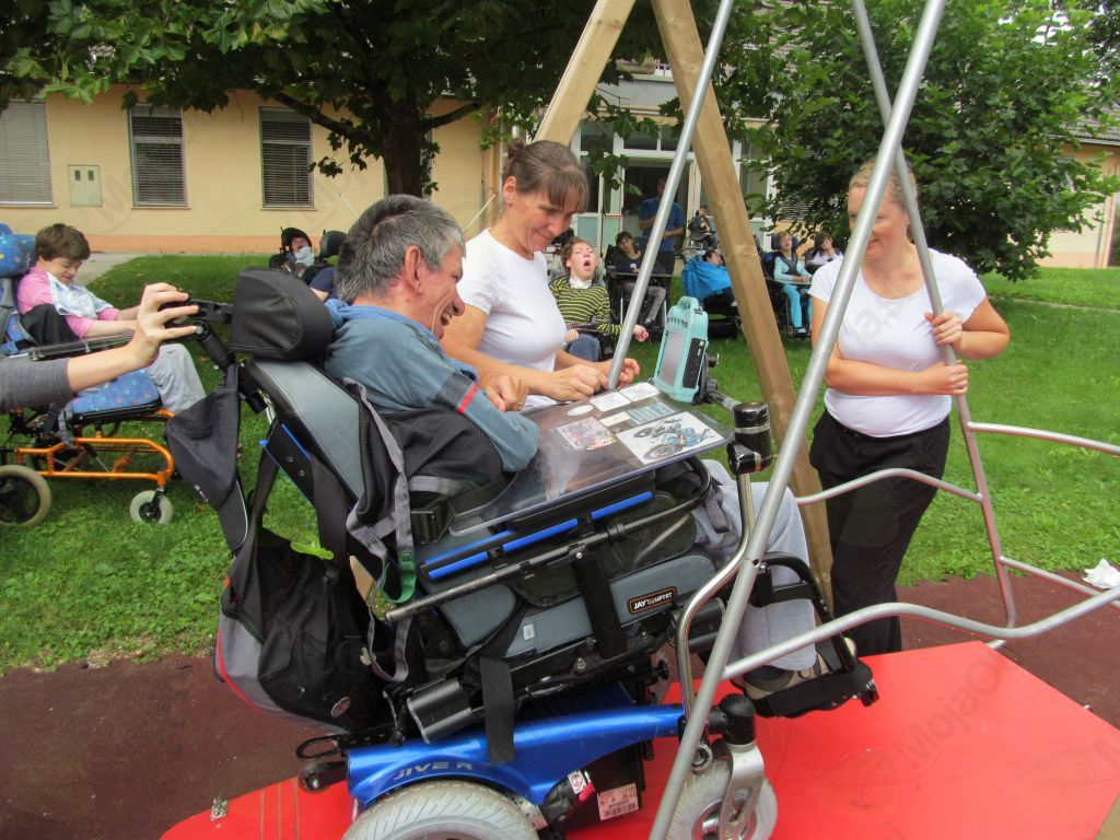 V petek, 18.9., smo pripravili otvoritev in demonstracijo uporabe naše nove gugalnice, prilagojene za vozičke, ki nam jo je podarila občina Radovljica. Potrebe po ohranjanju zdravja, po druženju in socializaciji gibalno oviranih oseb se ne razlikujejo od potreb ostale populacije, zato je gugalnica velika pridobitev. V objektiv smo ujeli veliko nasmehov otrok in stanovalcev, ki bodo bogatejši za novo izkušnjo. Odslej bo osebam na invalidskih vozičkih vsakodnevno na razpolago, če bo le vreme temu naklonjeno.