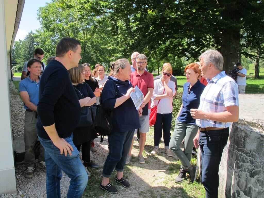 Ministrica za kulturo dr. Asta Vrečko je danes s sodelavci in predstavniki Zavoda za varstvo kulturne dediščine obiskala nekatere v poplavah prizadete dele Gorenjske. Škodo, ki je nastala na grobišču talcev in Gradu Katzenstein v Begunjah, si je ogledala z županom Cirilom Globočnikom, direktorjem Psihiatrične bolnišnice Begunje Mitjem Logarjem in direktorico Muzejev radovljiške občine dr. Petro Bole.