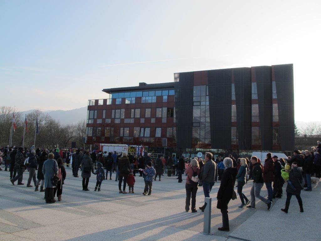 Ob številnih navijačih sta Petra Prevca pozdravila še dva radovljiška olimpijca – alpski smučar Jure Franko, prejemnik srebrne medalje na olimpijskih igrah v Sarajevu 1984, je svoje čestitke sporočil pisno, v živo pa smučarski skakalec Franci Petek, svetovni prvak in prvi zastavonoša v zgodovini samostojne Slovenije na zimskih olimpijskih igrah leta 1992 v Albertvillu.