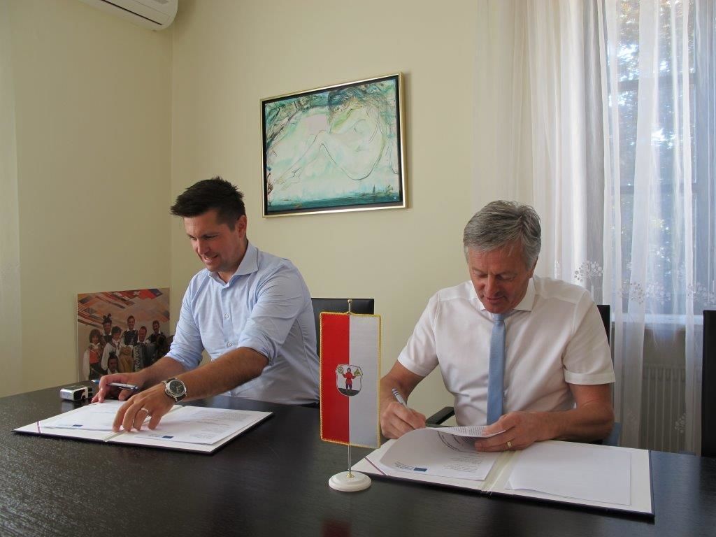 V avgustu se bo začela gradnja kanalizacije in vodovoda v Kamni Gorici. Župan Ciril Globočnik je danes podpisal gradbeno pogodbo z direktorjem CBE d.o.o. Sašom Previšićem. Izvajalec je bil izbran na podlagi javnega razpisa.