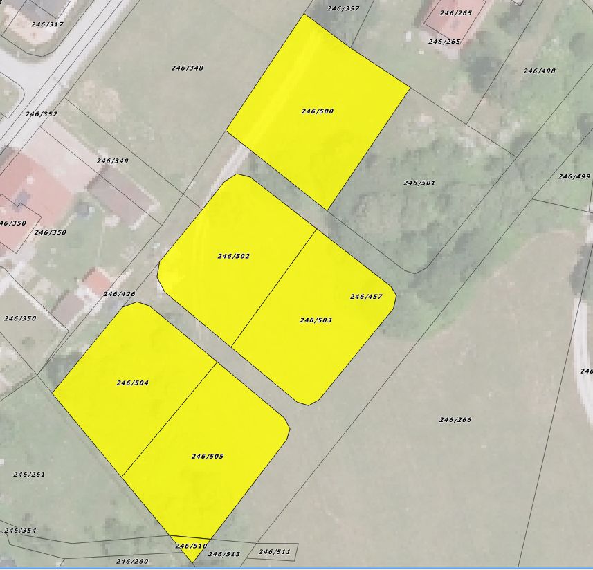 Občina Radovljica ponovno objavlja javno dražbo za prodajo petih zemljišč v katastrski občini 2164 – Lancovo, in sicer: zemljišča s parc. št. 246/500 v izmeri 688 m2, zemljišča s parc. št. 246/502 v izmeri 568 m2, zemljišča s parc. št. 246/503 v izmeri 580 m2, zemljišča s parc. št. 246/504 v izmeri 574 m2 in zemljišča s parc. št. 246/505 v izmeri 626 m2 ter zemljišča s parc. št. 246/510 v izmeri 17 m2, ki se prodajata skupaj v paketu.