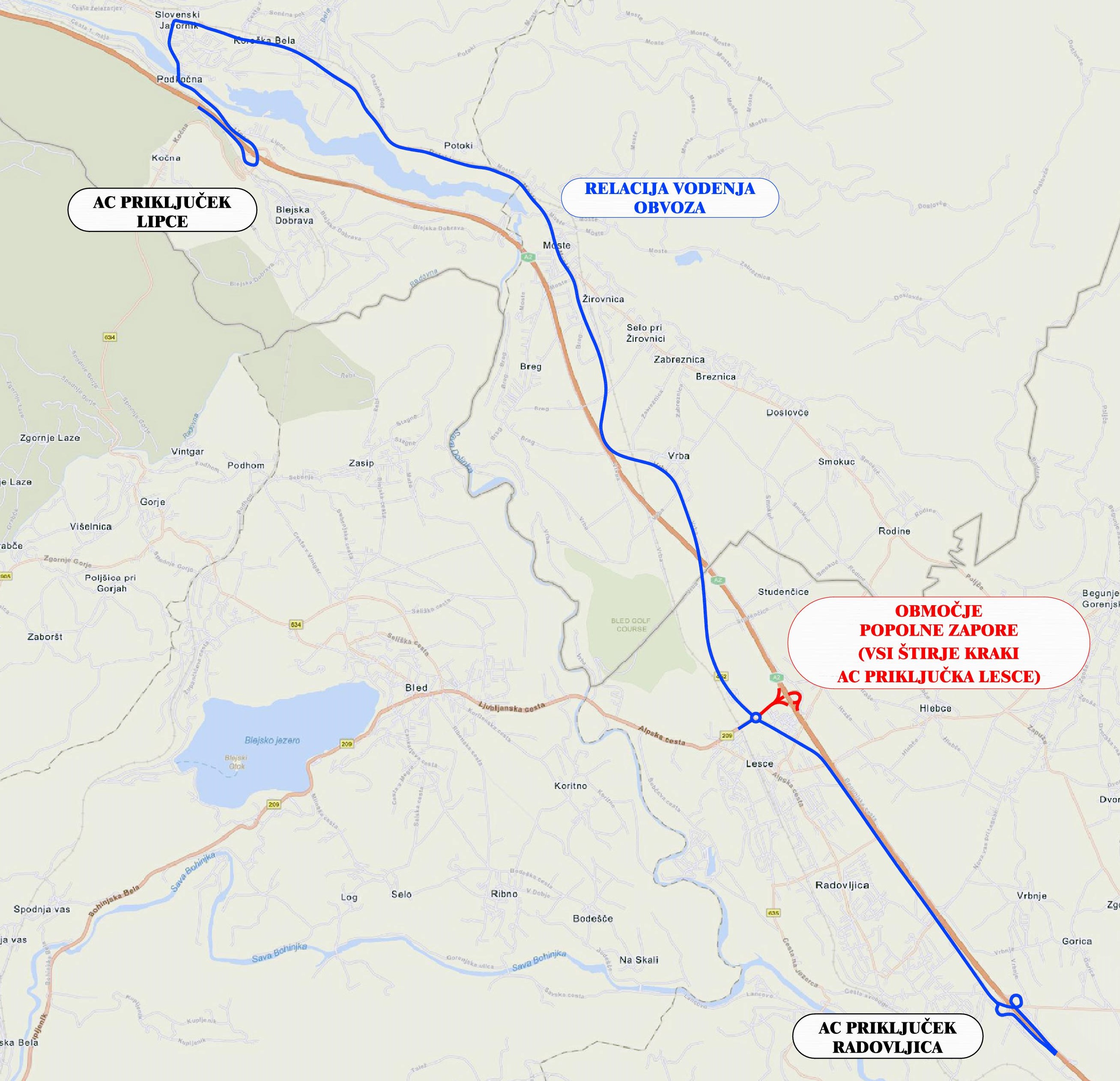 Podjetje Gorenjska gradbena družba d.d., Jezerska cesta 20, 4000 Kranj, bo za investitorja DARS d.d., Ulica XIV. Divizije 4, 3000 Celje, izvajalo preplastitev voziščne konstrukcije vseh štirih AC krakov avtocestnega priključka Lesce, zaradi česar bo potrebno na tem avtocestnem odseku vzpostaviti popolno zaporo.