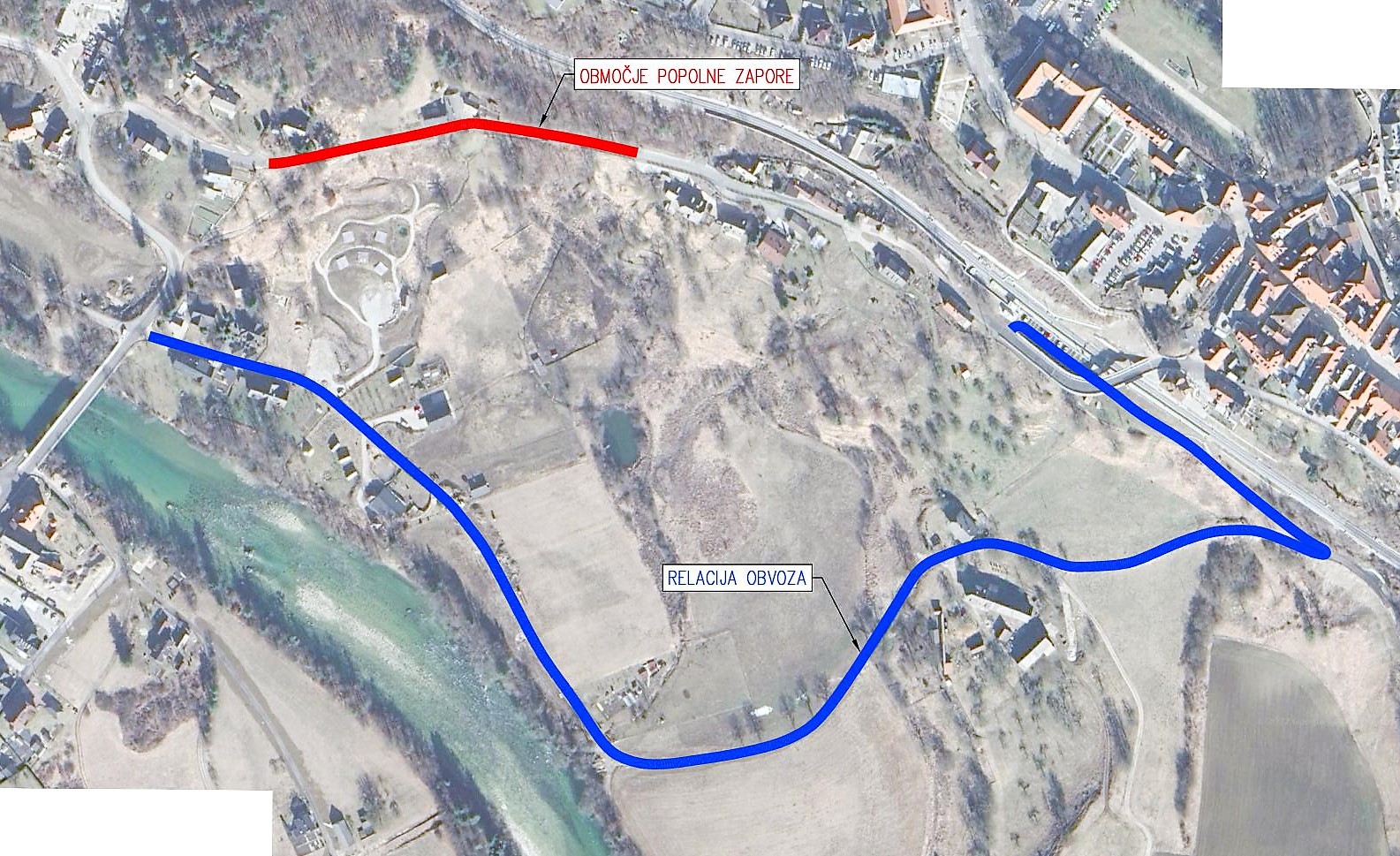 Obvoz bo urejen po cesti Na Mlako preko železniškega postajališča. Obvoz je prikazan na priloženi situaciji.