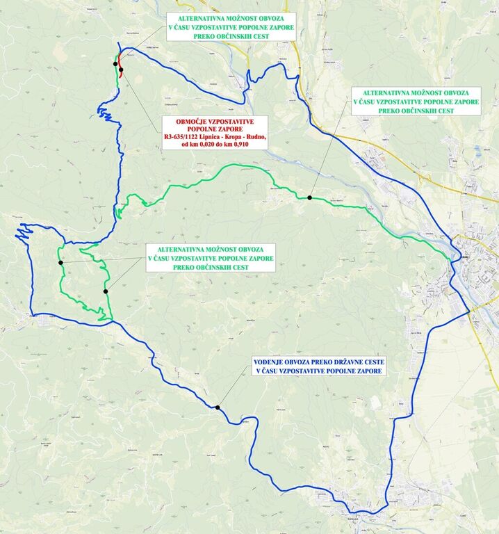 Popolna zapora državne ceste na odseku R3-635/1122 Lipnica – Kropa – Rudno