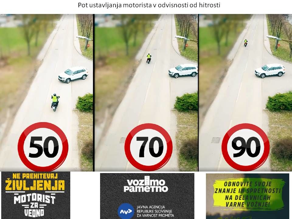 • ne vozite prehitro, saj hitrost povečuje verjetnost padca, podaljšuje zavorno pot, ostale voznike pa presenetite;