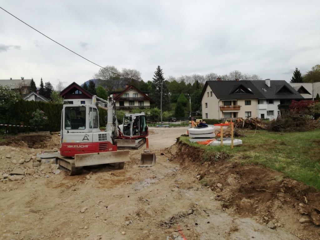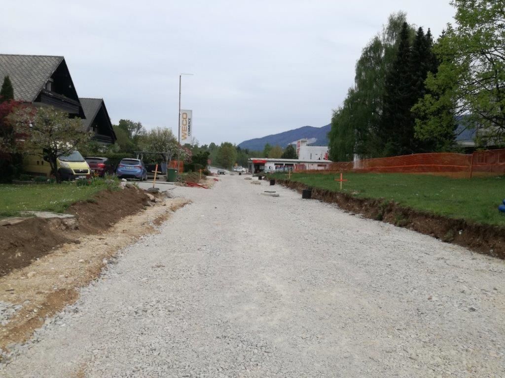 Rekonstrukcija Železniške ulice v Lescah v polnem teku