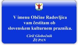 Občina Radovljica, Območna izpostava Javnega sklada RS za kulturne dejavnosti Radovljica in Glasbena šola Radovljica vabijo na ogled proslave ob slovenskem kulturnem prazniku. Ogled proslave na spletnih straneh bo mogoč od sobote, 6. februarja, od 19. ure, na povezavi: https://youtu.be/6_Q0-497BC8. V kulturnem sporedu proslave bodo nastopili učenci Glasbene šole Radovljica in igralka, pisateljica, pesnica in učiteljica Nataša Konc Lorenzutti z recitacijami Prešernovih pesmi.