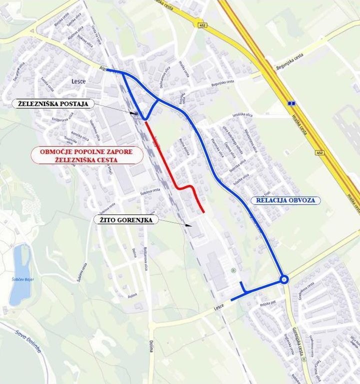 Rekonstrukcija Železniške ulice bo izvedena na odseku med železniško postajo Lesce in Žitom. Vključevala bo ureditev ceste v širini 6 metrov, vključno z obojestranskim pomožnim kolesarskim pasom v širini 1,25 m, ureditev izvennivojskega pločnika v širini 1,6 m, ureditev meteorne in fekalne kanalizacije, obnovo vodovoda ter ureditev javne razsvetljave.