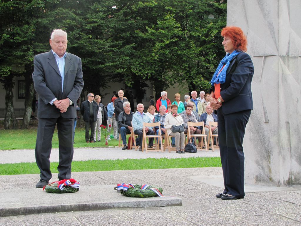 Radovljica, 8. september 2017 - V Grajskem parku v Radovljici je bila danes slovesnost ob 75 - letnici smrti narodnega heroja Jožeta Gregorčiča - Gorenjca, poveljnika Cankarjevega poveljnika, ki je s soborci padel v bojih na Lipniški planini 9. septembra 1942.
