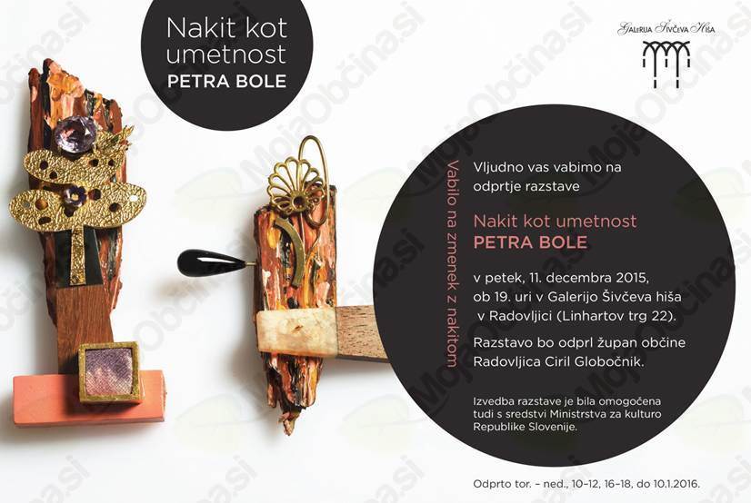 V Galeriji Avla Občine Radovljica bo v sredo, 9. decembra, ob 18. uri odprtje razstave del občinske nagrajenke akademske slikarke Maše Bersan Mašuk. Muzeji radovljiške občine pa bodo v petek, 11. decembra, ob 17.30 uri v Radovljiški graščini pripravili muzejski večer z direktorico Mestnega muzeja Idrija Ivano Leskovec Dediščina živega srebra Idrije in Almadéna – pot do vpisa na Unescov seznam in ob 19. uri v Galeriji Šivčeva hiša odprtje razstave arhitektke in oblikovalke Petre Bole Nakit kot umetnost.