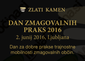 V sodelovanju z zmagovalnimi občinami Zlatega kamna 2016 - Ljubljano, Novo Gorico, Velenjem in Ptujem bo 2. junija 2016, v Mestni hiši Mestne občine Ljubljana, nacionalne zmagovalke, potekal Dan zmagovalnih praks. Srečanje, ki bo trajalo od 10. do 14.30 ure, bo v celoti namenjeno prenosu dobrih praks na področju trajnostne mobilnosti.